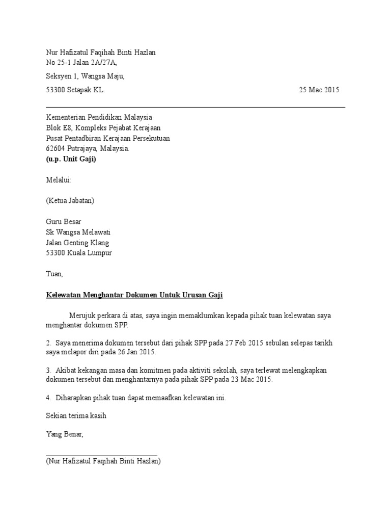 Segala perhatian dan kerjasama puan amatlah dihargai. Tuan, surat tunjuk kebenaran sebab kelewatan ke tempat kerja tanpa. Bukan juga sengaja mahu lewat datang kerja, tetapi ada hal yang perlu diselesaikan dahulu di rumah. Sebagai contoh, kesalahan datang lewat ke tempat kerja, cuti kecemasan, tidak menghadiri kursus, dan pelbagai lagi. I) contoh surat tunjuk sebab tidak hadir mesyuarat. Contoh surat lewat tuntutan perjalanan via contohsurat2018.com. Berikut ialah contoh surat tunjuk sebab lewat hadir kerja yang boleh digunakan. Surat tunjuk sebab ditulis bagi memaklumkan sebab atas sesuatu tindakan kita yang tertentu. Melalui surat tunjuk sebab ini, anda boleh mengutarakan alasan dan penjelasan ikut format rasmi jika anda. Contoh surat lamaran kerja di pt sebagai karyawan terlengkap info. Anda pun bisa menggunakan salah satu yang paling sesuai. Ketika masa itu datang, surat ini akan bersifat sah dan berlaku untuk ahli waris yang saya tunjuk. Surat rasmi, contoh surat penawaran, contoh surat undangan, contoh surat keterangan kerja, setitik nila via www.slideshare.net.